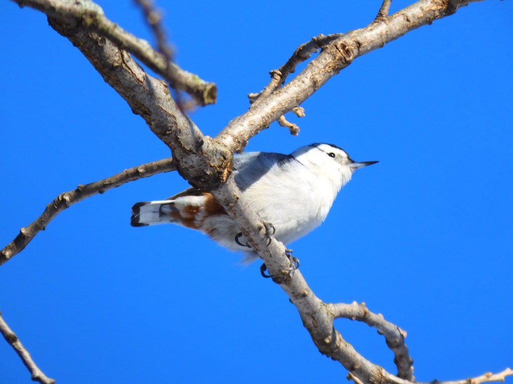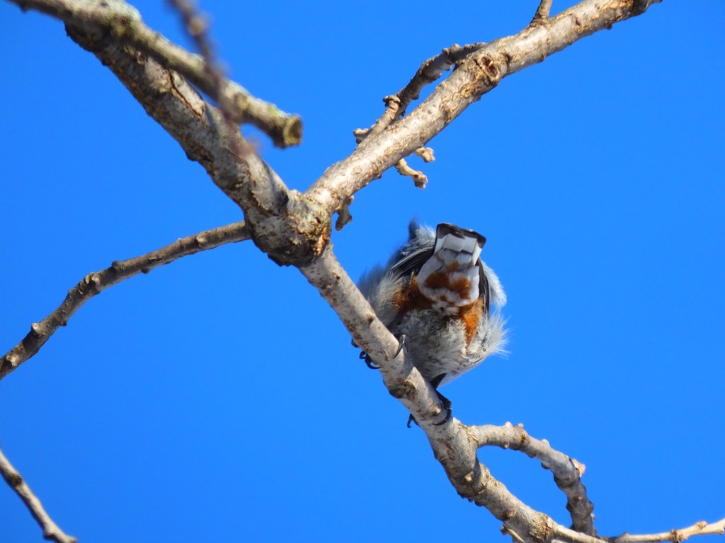 Here’s a pretty little nuthatch who was paying far more attention to its other three companions flitting around in the tree than to me.