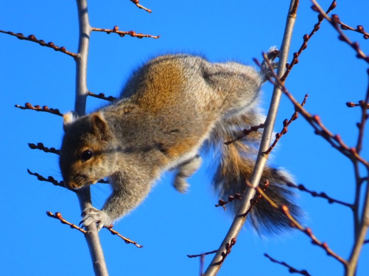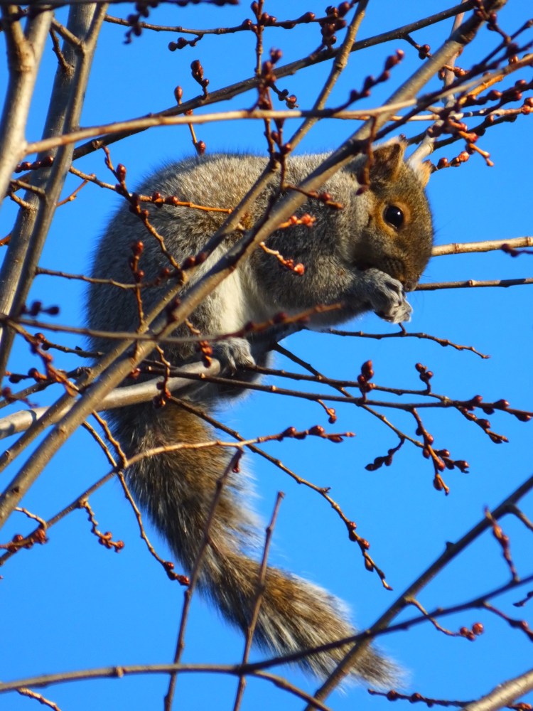 Beside the falls, I was surprised to find this grey squirrel apparently eating the buds off this tree, which identify.plantnet.org thinks is probably a pignut hickory (Carya glabra). Man, if it were an ornamental, or even a specimen tree, that I had planted in my yard, I would not be happy about this. Happily, it’s growing wild in the park so who cares, and bon appetit, my little friend!