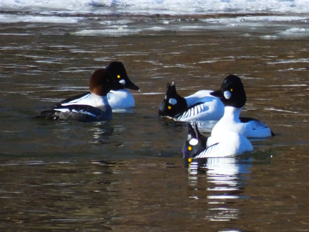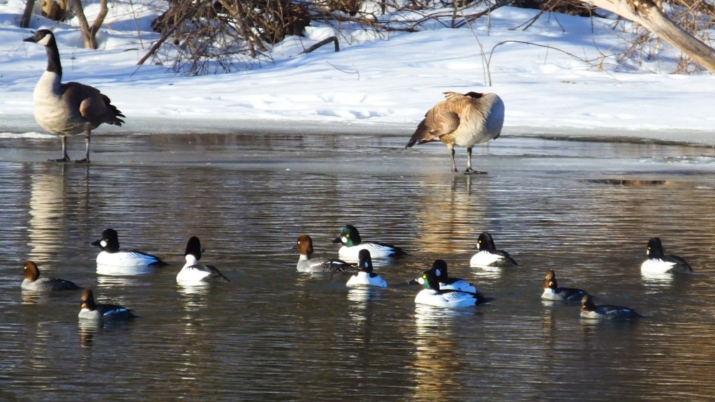 Above the falls, there were plenty of goldeneyes, the pair of buffleheads, and a couple of geese, but I was surprised to see no mallards.