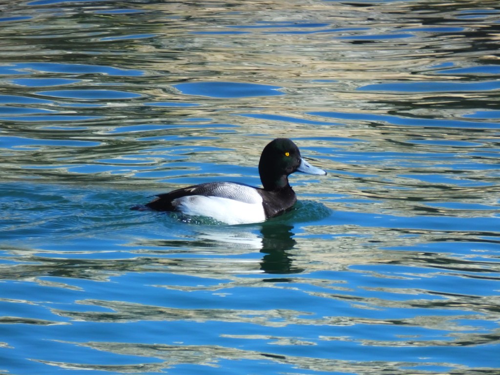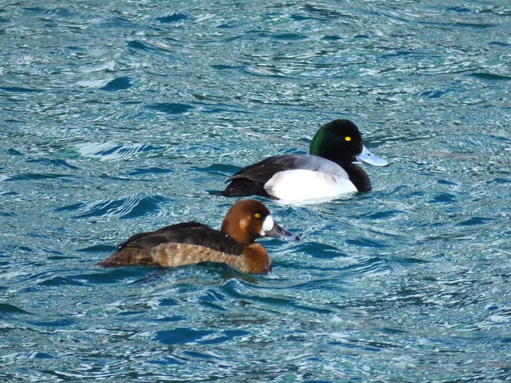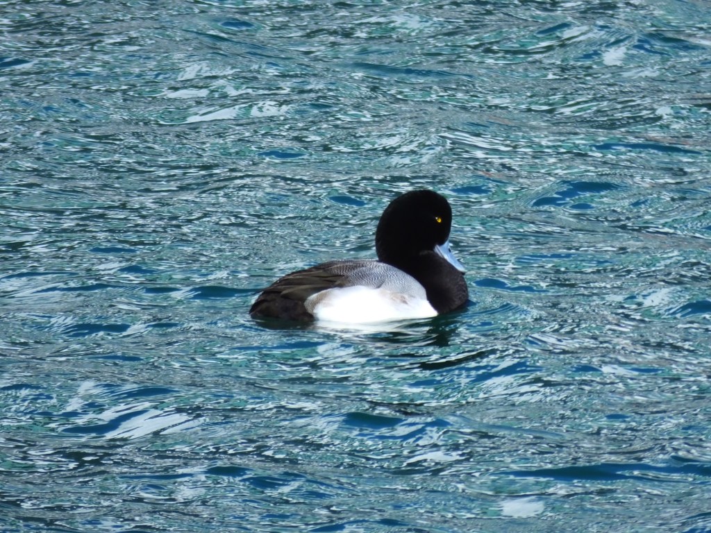 Sure enough, the water is full of fowl, including many of the mergansers, goldeneyes, gulls, and mallards that we see in Estabrook, but also a slew of these handsome devils with blue bills on. My sources tell me that they are greater scaup (Aythya marila) taking a breather on their way to breeding grounds way the heck up north.