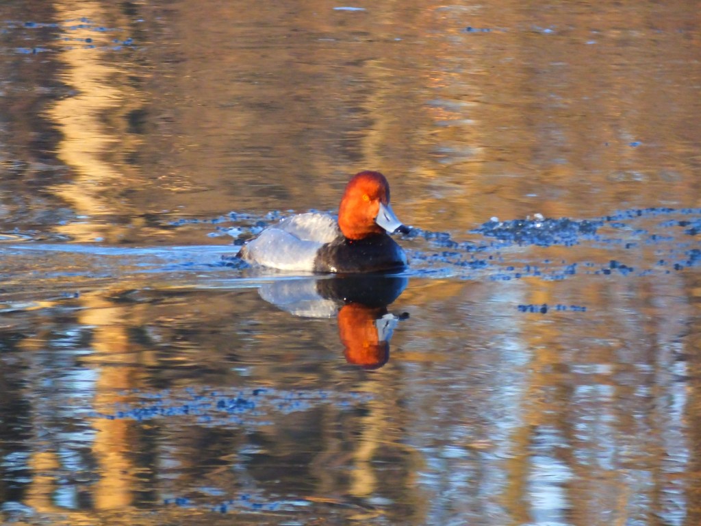 The activity on the river continues to evolve with the loss of ice, but our pair of redheads are still hanging around on the upper river just downstream from the southern island.