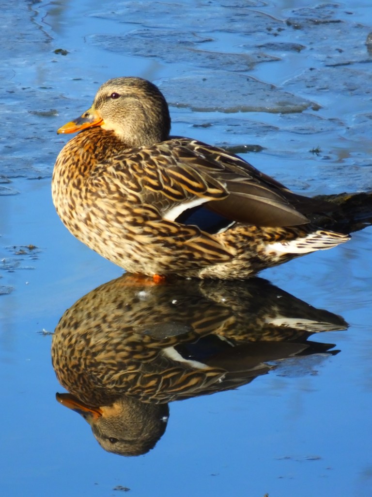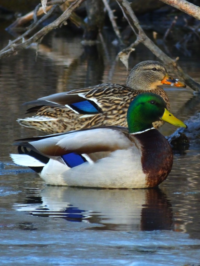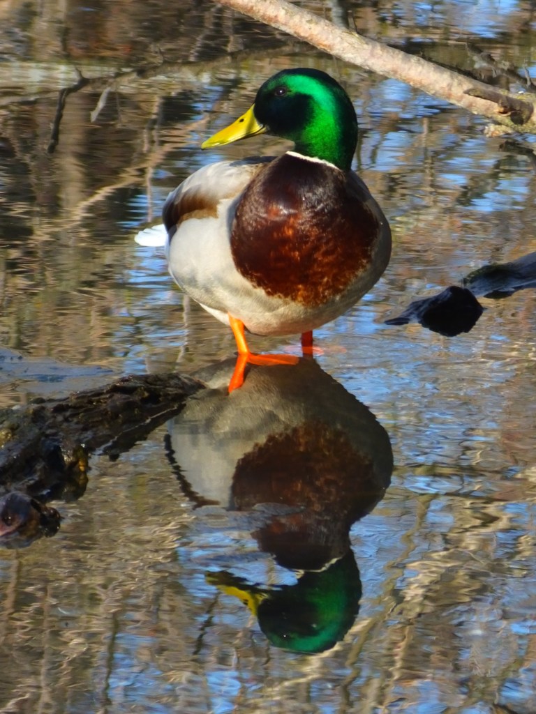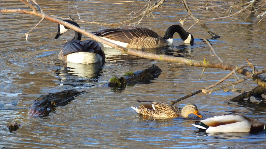 Back at the pond, the geese were gone again already, but the mallards were enjoying an after breakfast preen in the warm morning sun, …