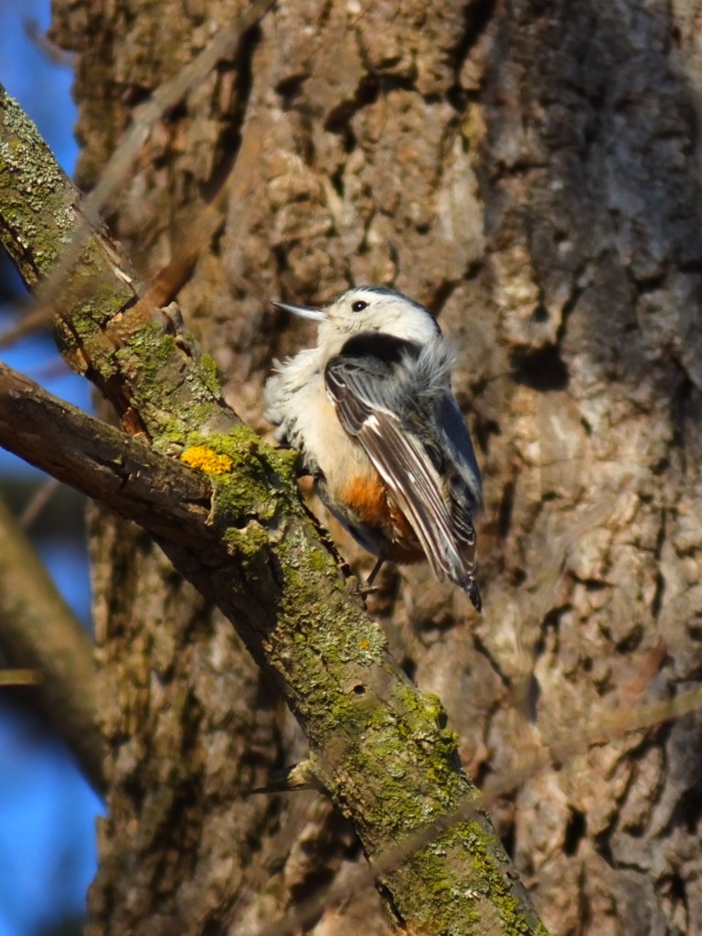 On the way back from the river, I happened upon this cute little nuthatch who had a lot of grooming to do. A second one appeared for an instant, which would have been an amazing shot, and then they were off.