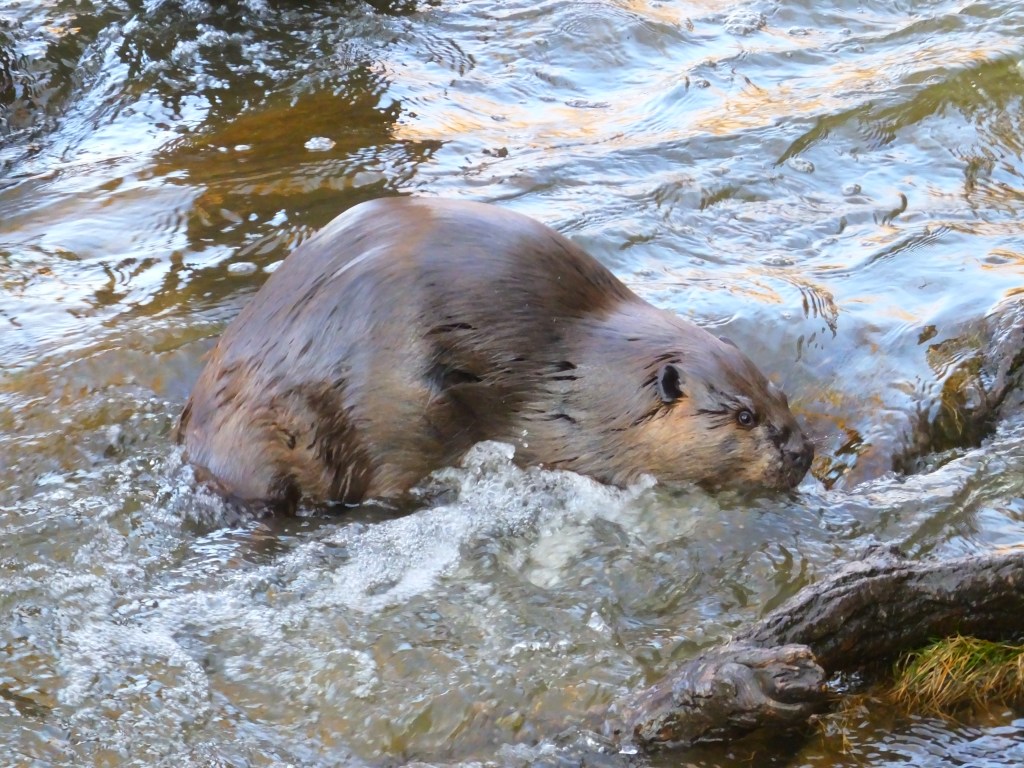 The river is still high, but the parts of the trail that are not actually submerged are really drying out, so I took a stroll, and you wouldn’t believe who I saw. That’s right, one of our beaver was trying to get over the falls, and it appears to have thought better of the idea after two attempts. The river really is moving these days, and it popped out of the water not 5 feet in front of me, twice, so I had a chance to pick up my jaw and get out my camera. I guess it really is true that they don’t have the greatest eyesight.