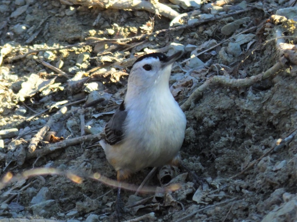 After all that excitement, I opted to see what else the trail had to offer, and just a bit south of there, I spotted this little nuthatch uncharacteristically foraging on the ground.