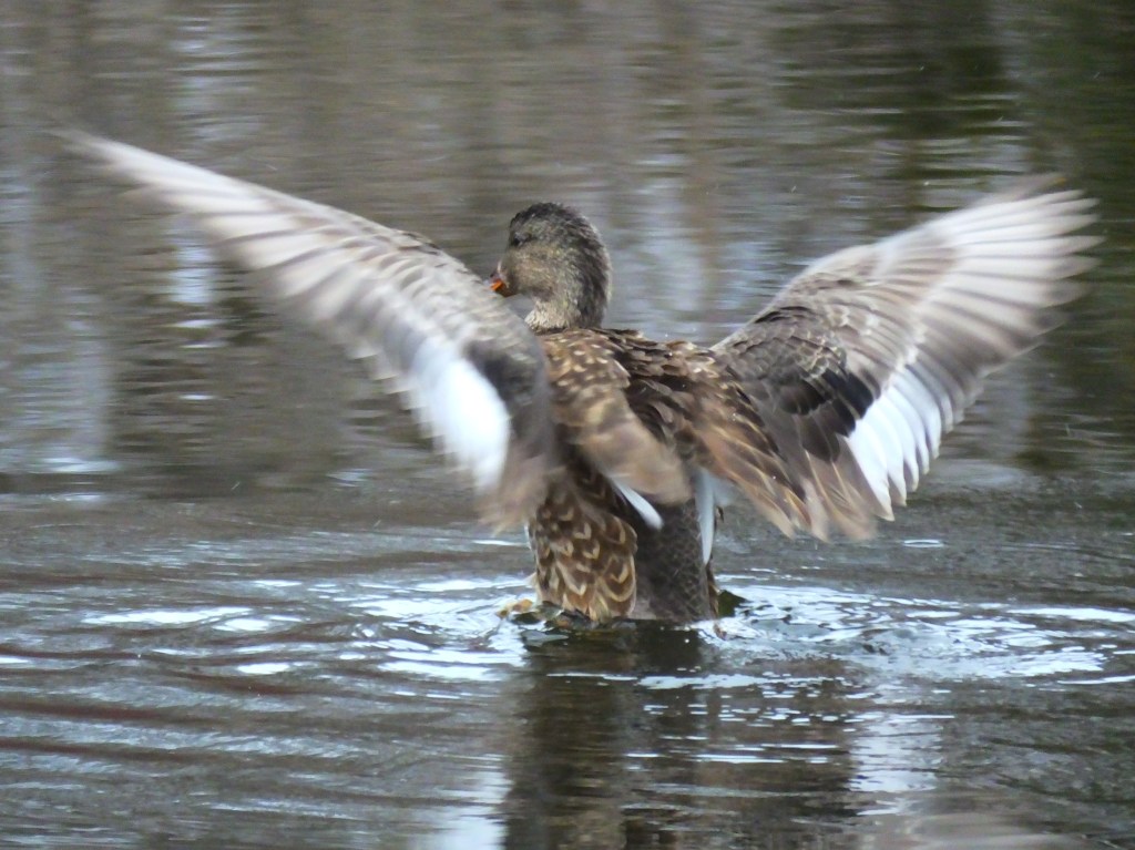 Our gadwall hen was also still there, and she even seems to be getting more comfortable. Here she is showing off her white speculum feathers.