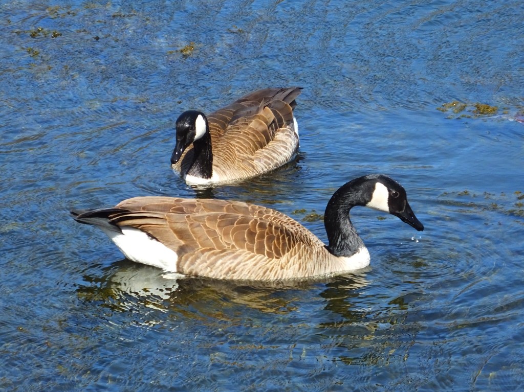 The two pair of geese, a pair of mallards, and Mrs. Gadwall were all on the pond.