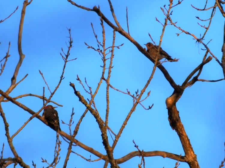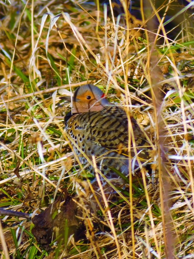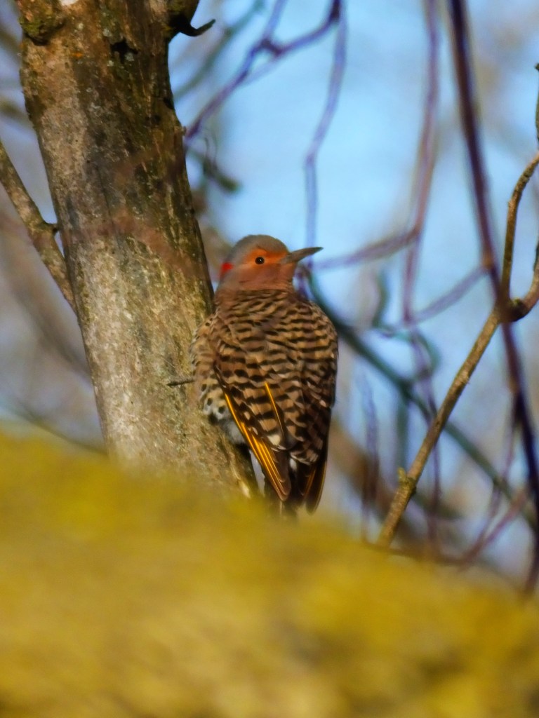The biggest sighting of the morning, however, was this northern flicker, who we first spotted back in the park just yesterday. There were even two of them, at first, but one soon amscrayed.