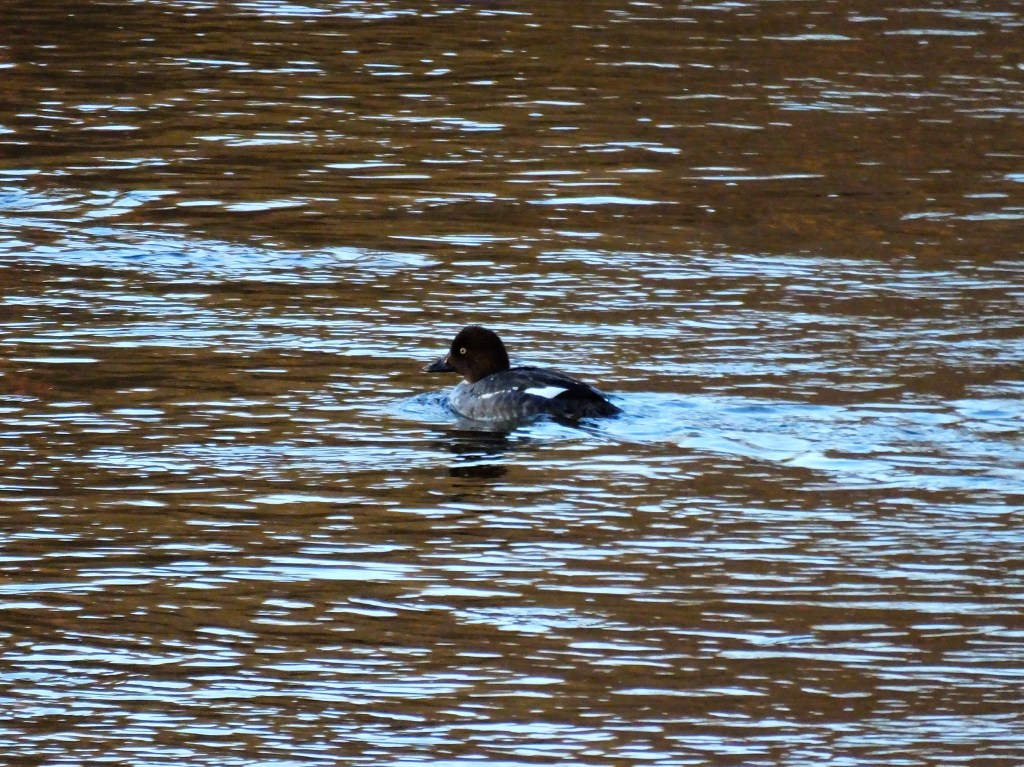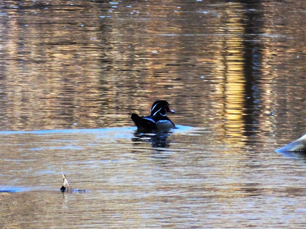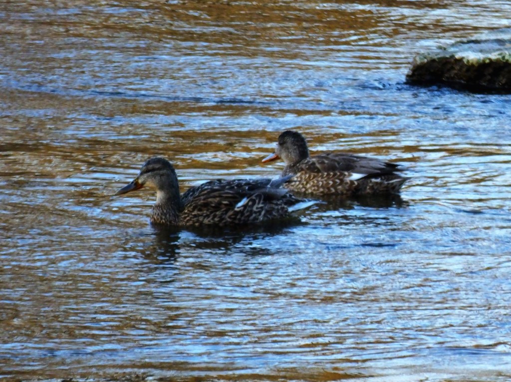 Also on the river were the young goldeneye, Mrs. Gadwall, one wood duck drake, several mallards, and a slew of geese. In the picture below with the two hens, can you tell which is the gadwall and which is the mallard? They don’t make it easy.