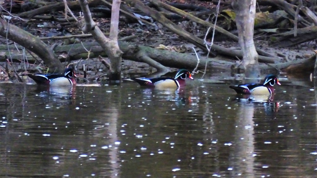 Right above them was this wood duck hen on a branch, perhaps scoping out nesting sites, which indeed are up in trees.