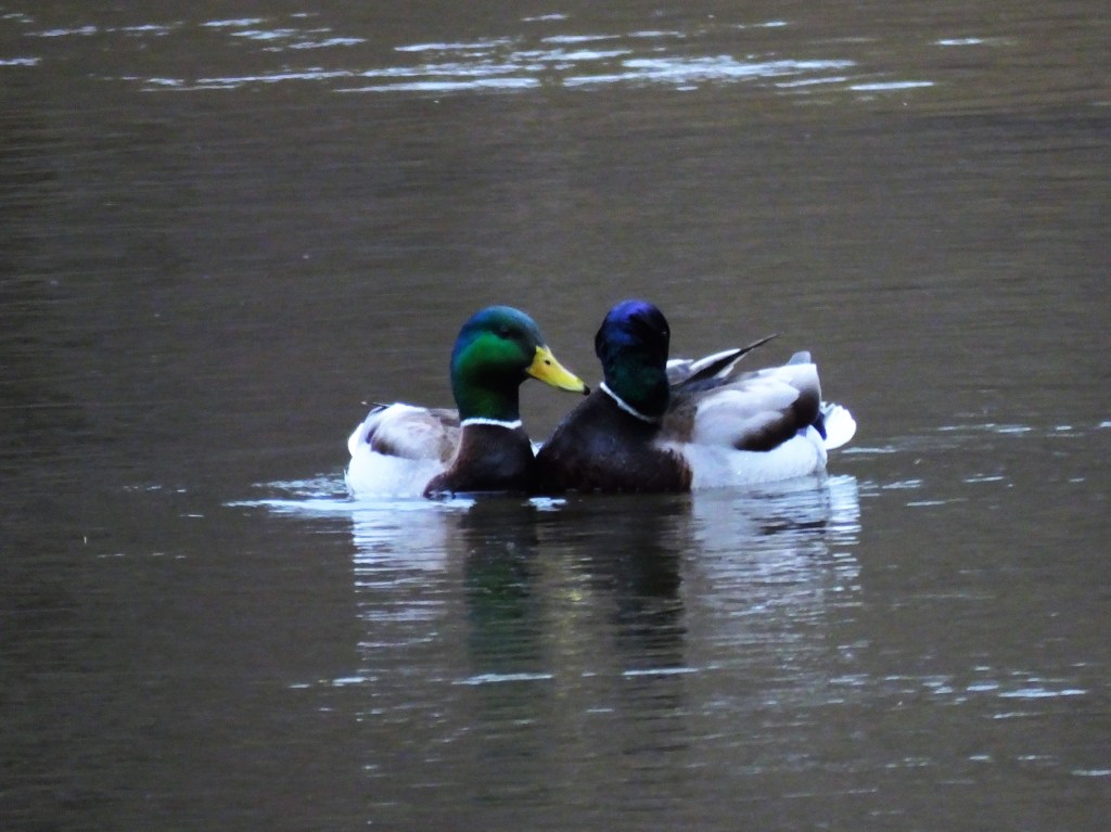Meanwhile, here’s a couple of drakes lazily drifting down the river together below her like a couple of bros having a swell time.