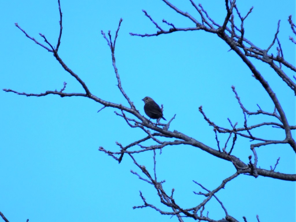 At the north end, the kingfishers toyed with me, and I didn’t even try today. Instead I found this guy who appears for all the world to be a male brown-headed cowbird, perhaps searching for that female we saw last Sunday.