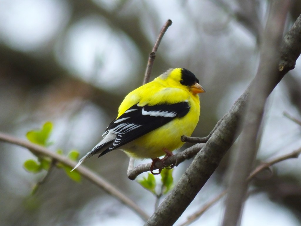 Finally, not everything was shades of brown, grey, and black. Here’s a goldfinch looking pretty yellow. Not completely yet, but almost there. Even he looks none too thrilled with the cool breeze out of the northwest.