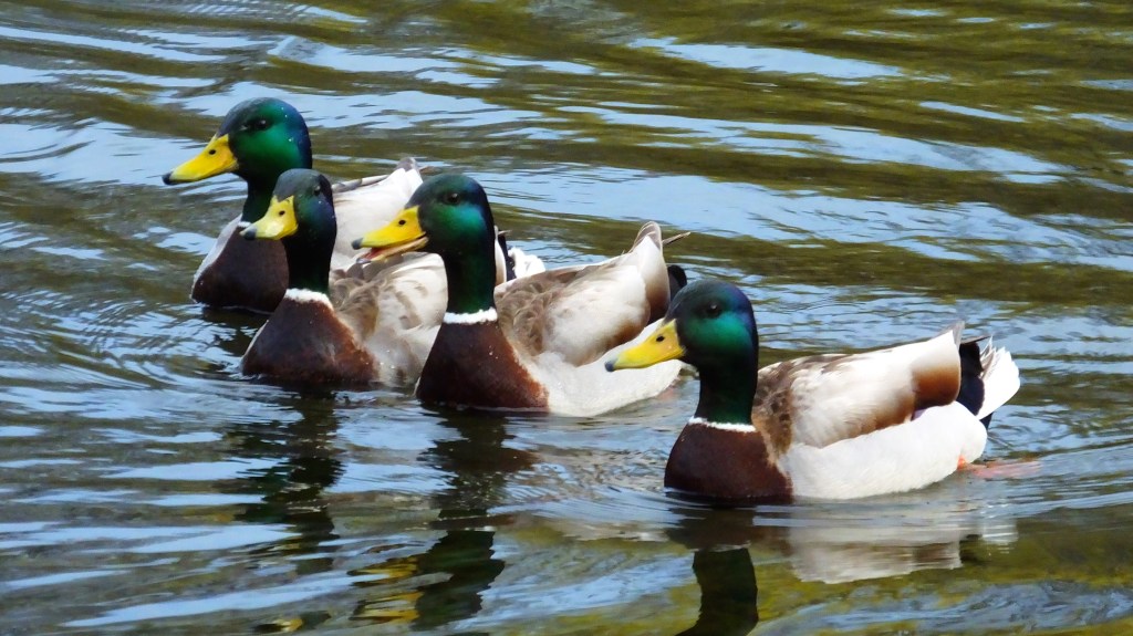 When I first arrived at the pond, there were three mallard drakes, goofing off as usual.