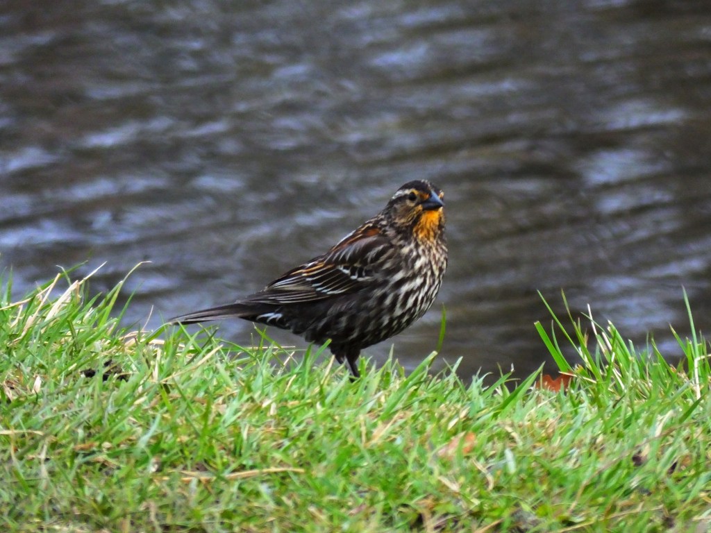 A female red-winged blackbird stopped by, so it appears she found the territory staked out by her intended to be suitable.