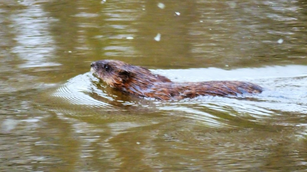 Both robins were on their nests as I went past, and further north, the muskrat passed by on its way south.