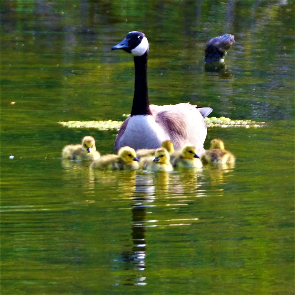 We also saw 3 other families with goslings, a few water thrushes, more green herons, a sandpiper or two, and even my first grey catbird of the season. I look forward to hearing their song.
