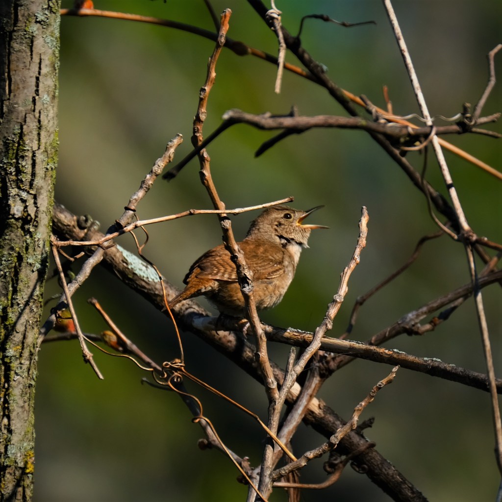 While checking on the robins, I heard the house wren again, and caught him singing his heart out on a nearby branch.