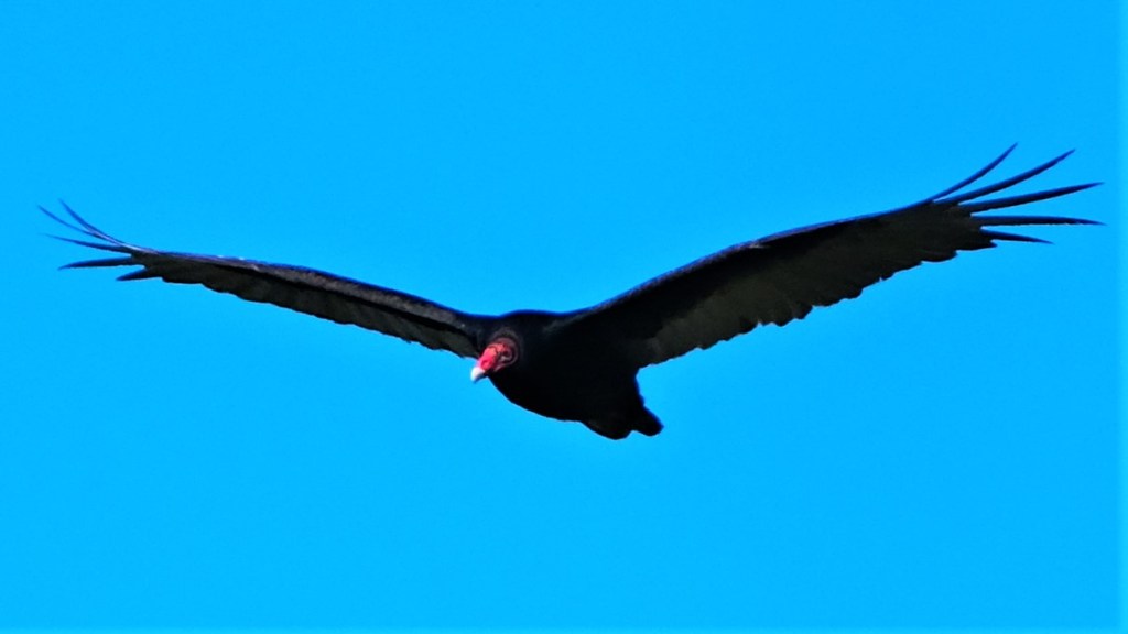 At the north end, I spotted an indigo bunting again, but flubbed that shot, and got this one of a turkey vulture instead. You can even see its bright red face this time.