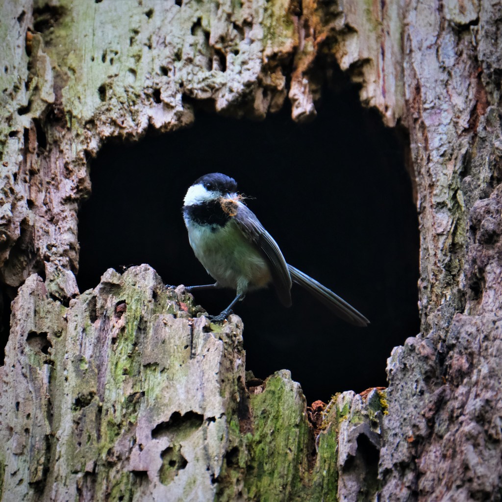 For the umpteenth time, I started floating home on cloud nine, but had to stop for this picture of a chickadee mining an old tree trunk for a beakfull of fluffy fibers.