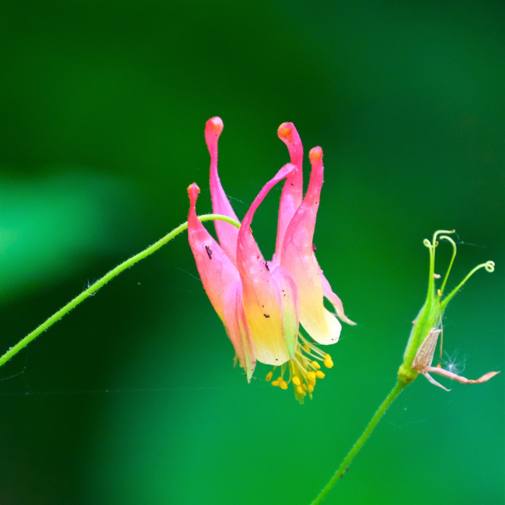 Closer to the ground, we’ve got several new blossoms in the park, including Canada columbine, eastern red columbine, or just plain wild columbine (Aquilegia canadensis);
