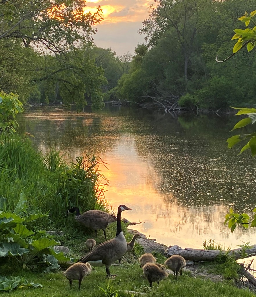 The gosling between the two adults sure looks smaller than the rest, doesn’t it? Maybe they’re the ones we saw yesterday, too. Ha!