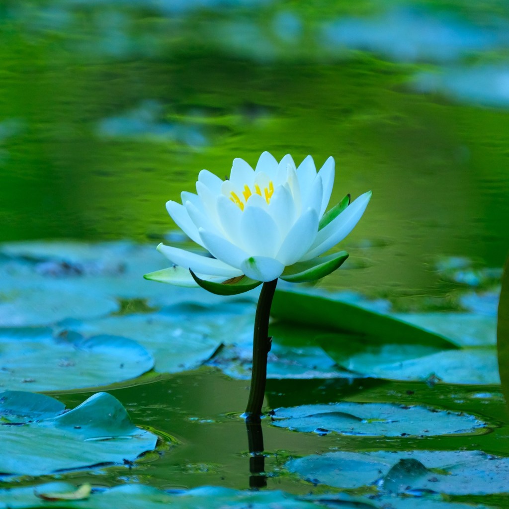 Finally, the American white water-lily (Nymphaea odorata) blossoms on the river have just opened.