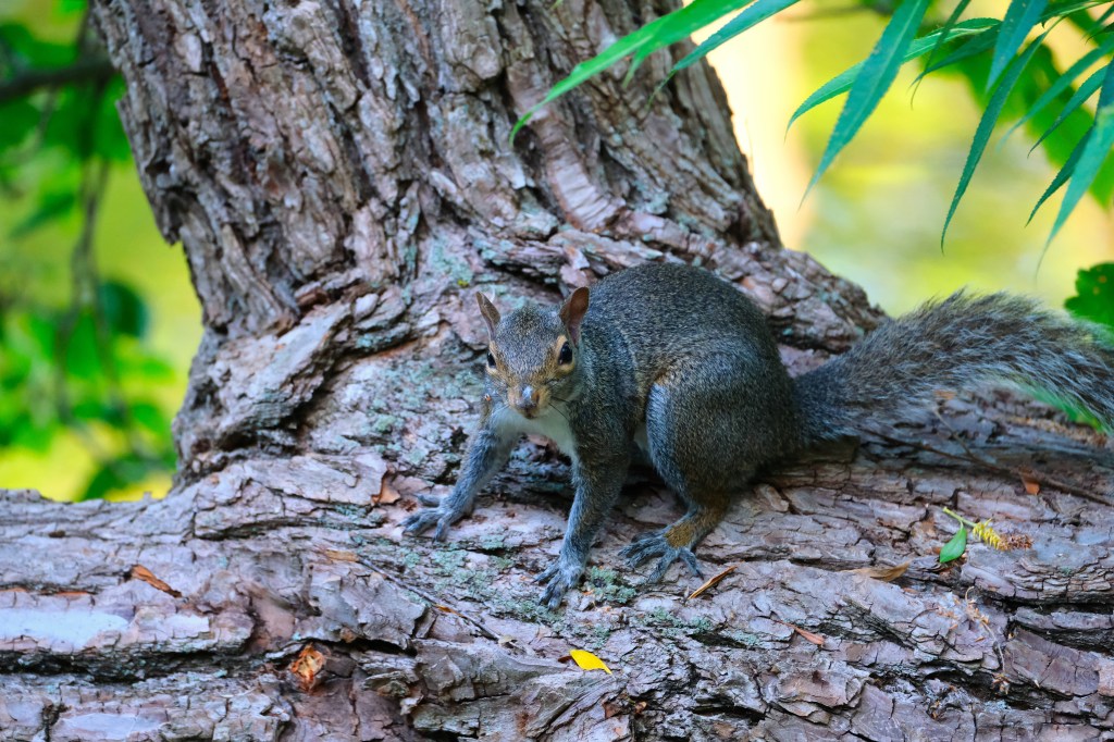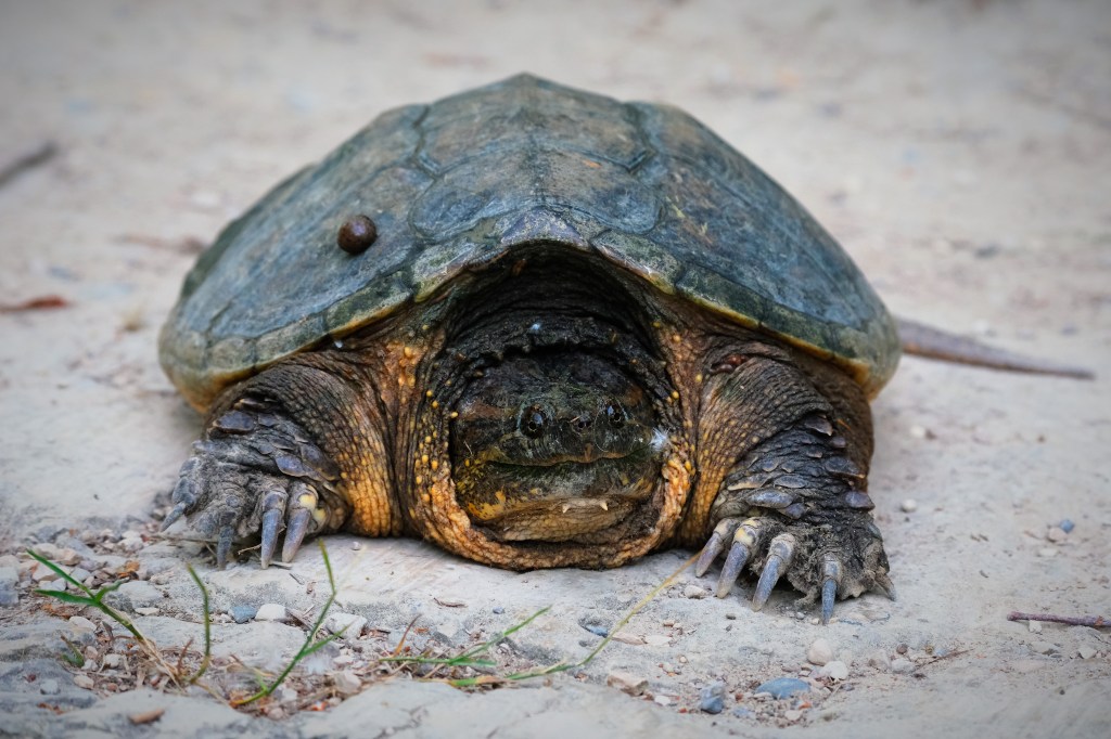 Yup, it appears that our new pall, the snapping turtle, was on the move again and about to surprise the dickens out of aa grey squirrel. Well, the squirrel headed for the trees…