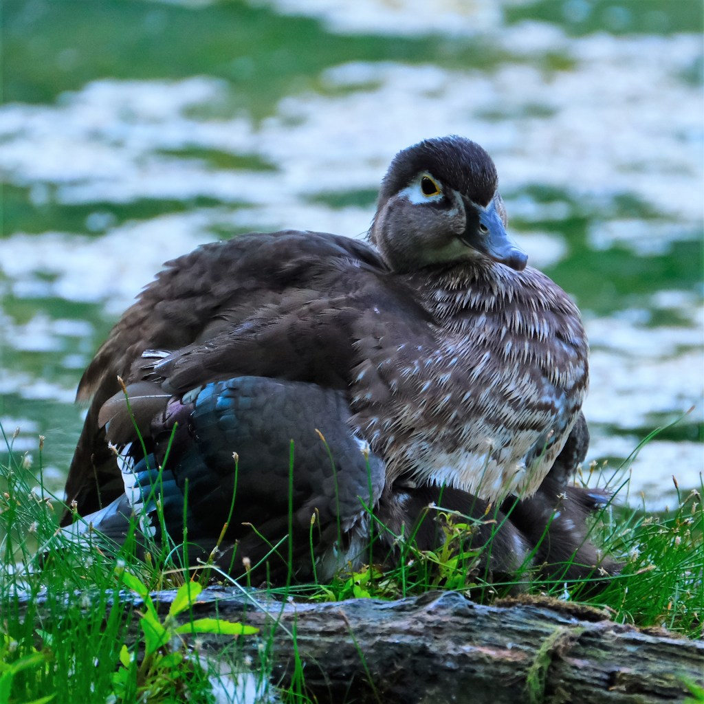 The deer took off, and I found the wood duck hen snuggling with her ducklings. It was a pretty chilly morning compared to the last few days, and I wished I had worn more than shorts and a t-shirt. In any case, I didn’t get to count the ducklings today, but not a bad visit to the pond, eh?