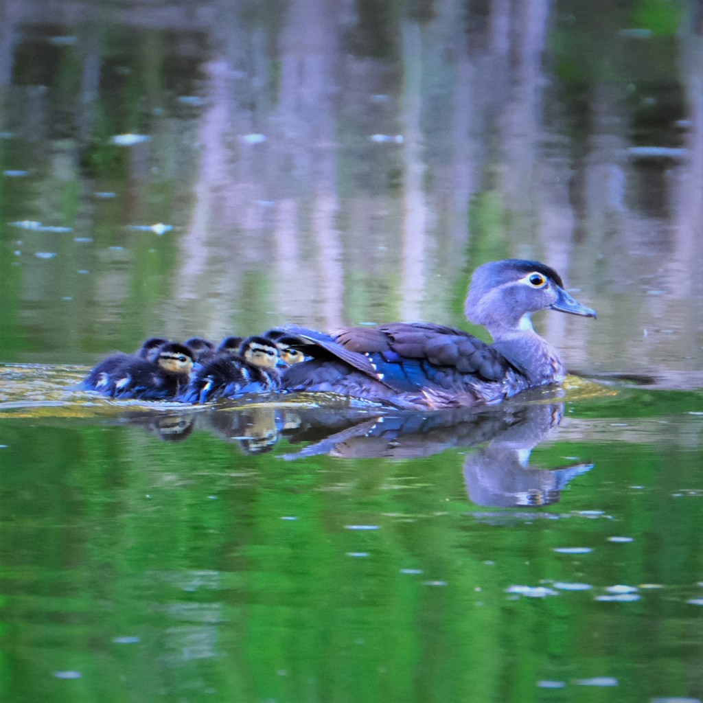 Sure enough! Here’s the first batch of wood duck ducklings I believe I’ve ever seen on the river, and I’m quite sure the ones we just saw on the pond are still there, so that makes two for the season. Woo Hoo! Go wood ducks! Right? Who could possibly not want to see more?