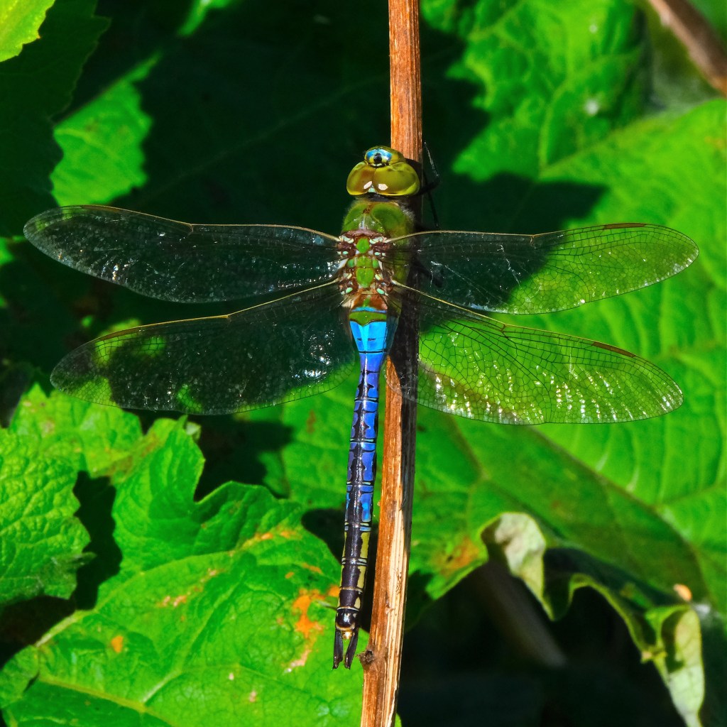 Finally, at the southern soccer fields, I finally found a “Lord of June dragonfly”, a common green darner (Anax junius) that is, ready to sit for its portrait. Thank goodness for cool mornings! I have nowhere near the Photoshop skills necessary to make that thing up.
