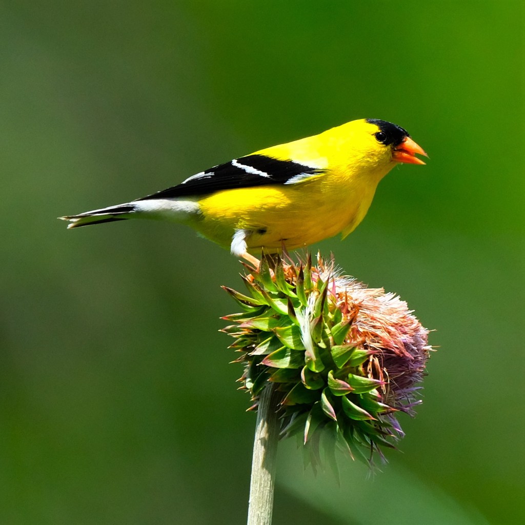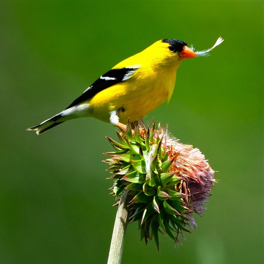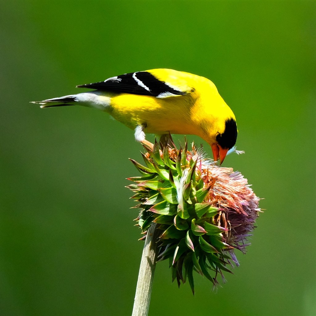 Meanwhile, the goldfinch have found the bull thistle blossoms and are just ripping apart the ones that have gone by.