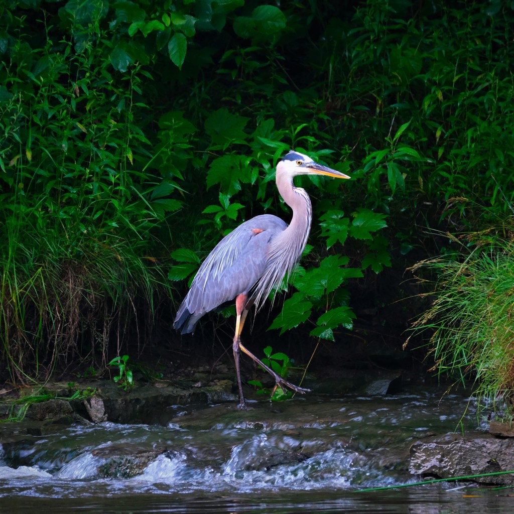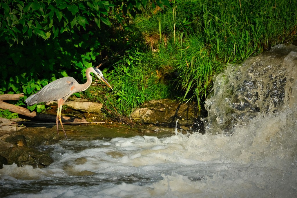 On my way back south, a third blue heron was in the usual spot at the falls.