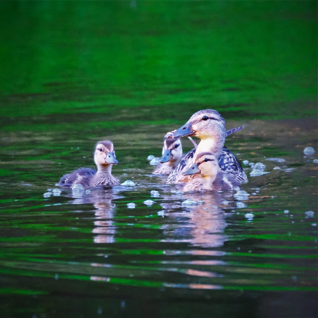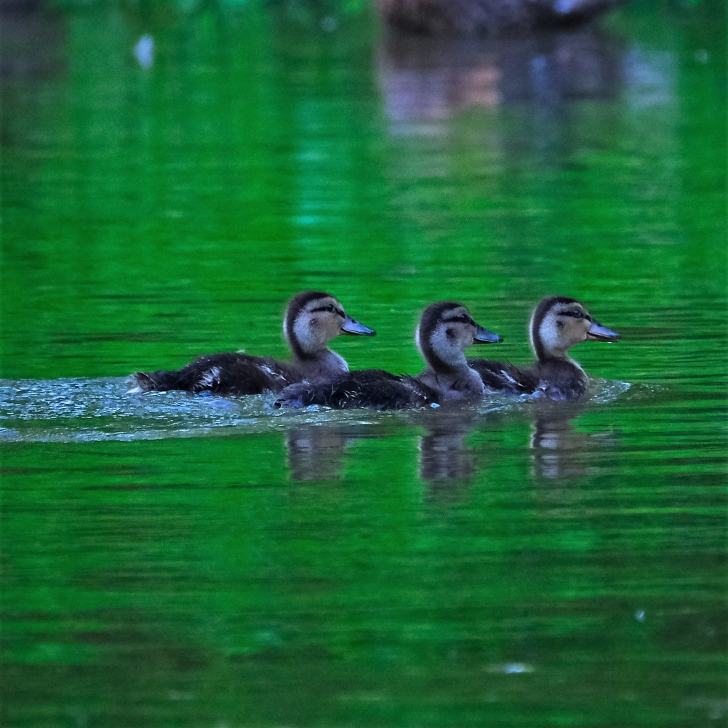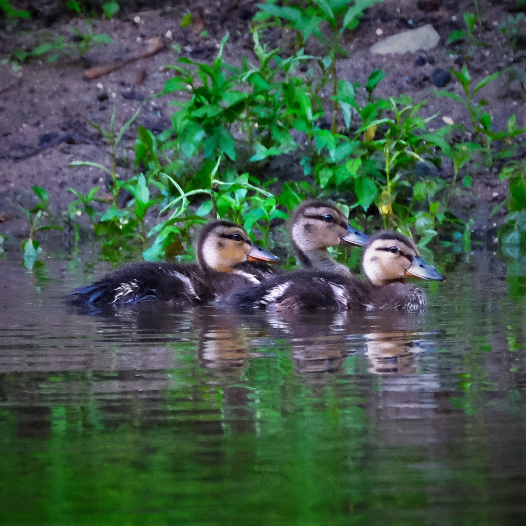 They quickly paddled over to the far shore as one intermittently chirped, as if calling for Mom.