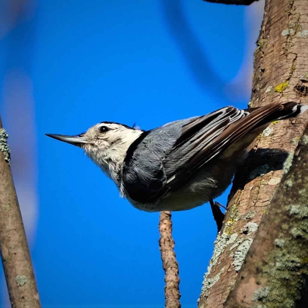 Finally, as I approached the weeds beside the soccer fields in hopes of a pretty butterfly, this busy little nuthatch reminded me that we haven’t seen much of them for a while, and we have a beautiful blue sky for a change.