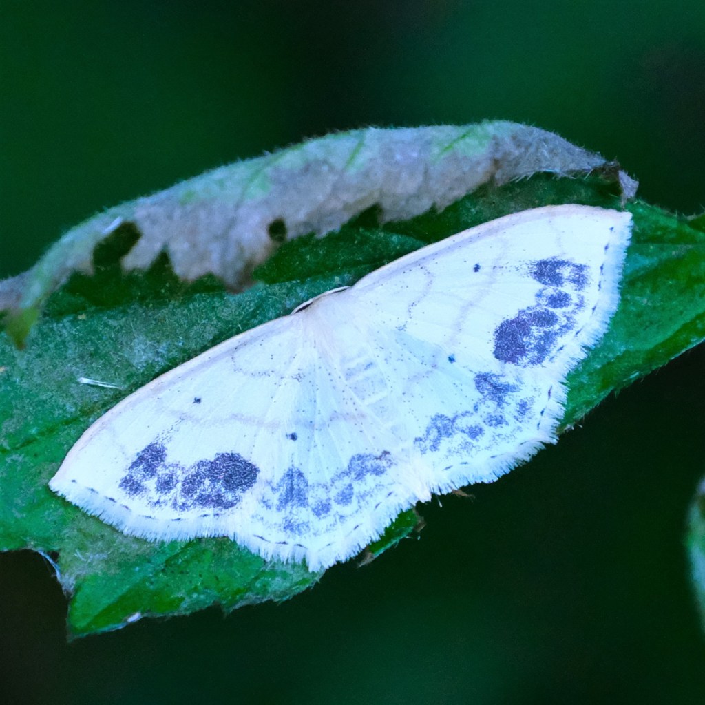 As I neared the north end, I came across this pretty little moth that maybe got leaf tops and bottoms mixed up, happily for us, and it appears to be a large lace-border (Scopula limboundata).