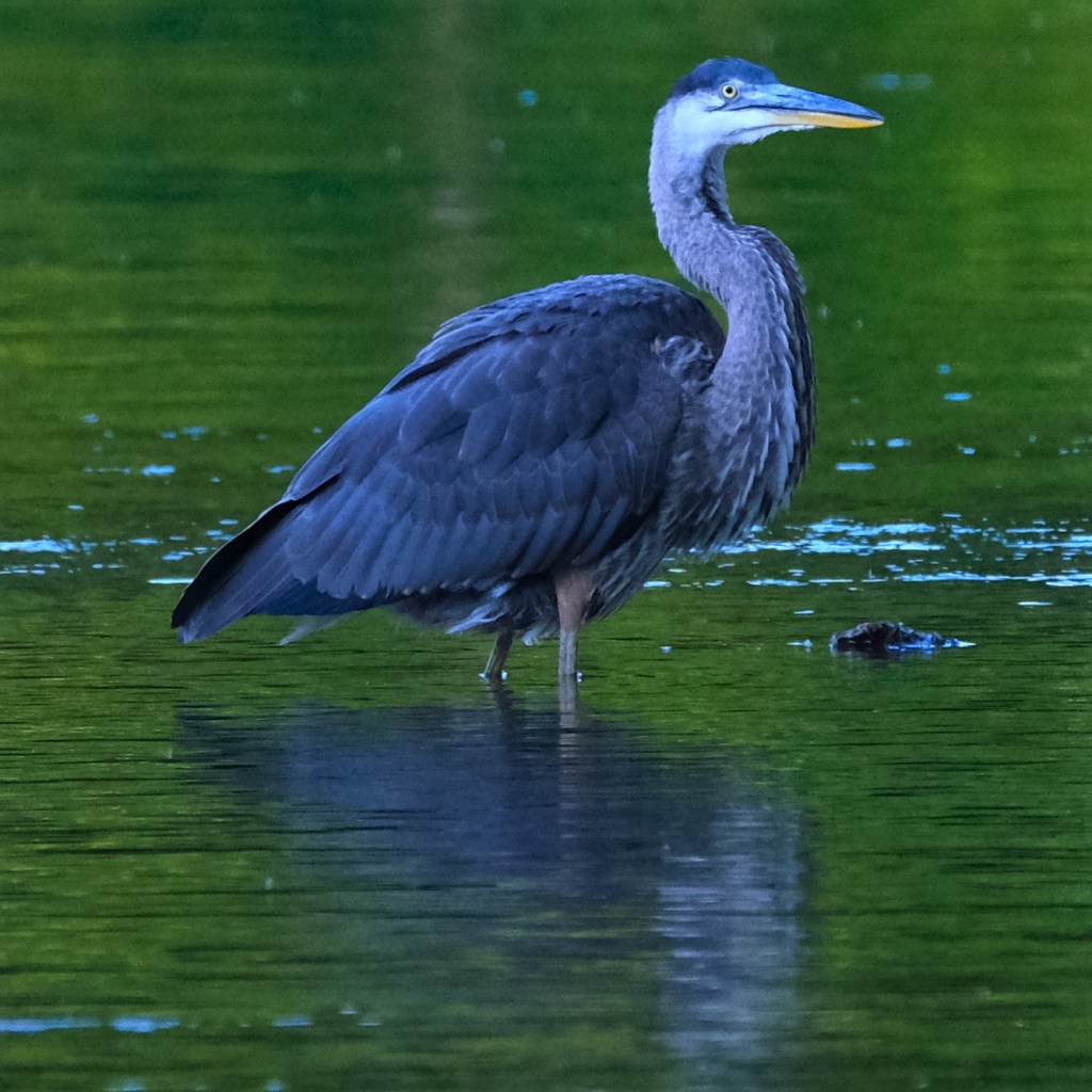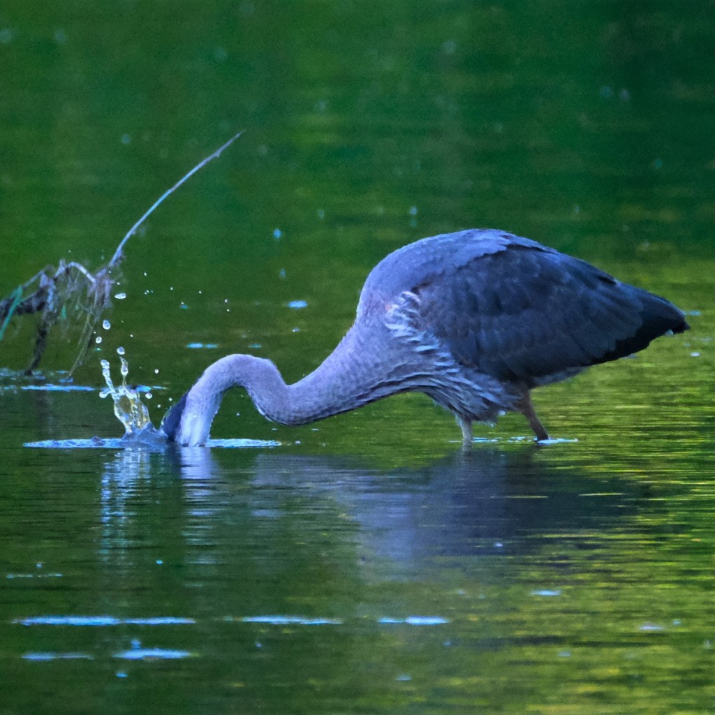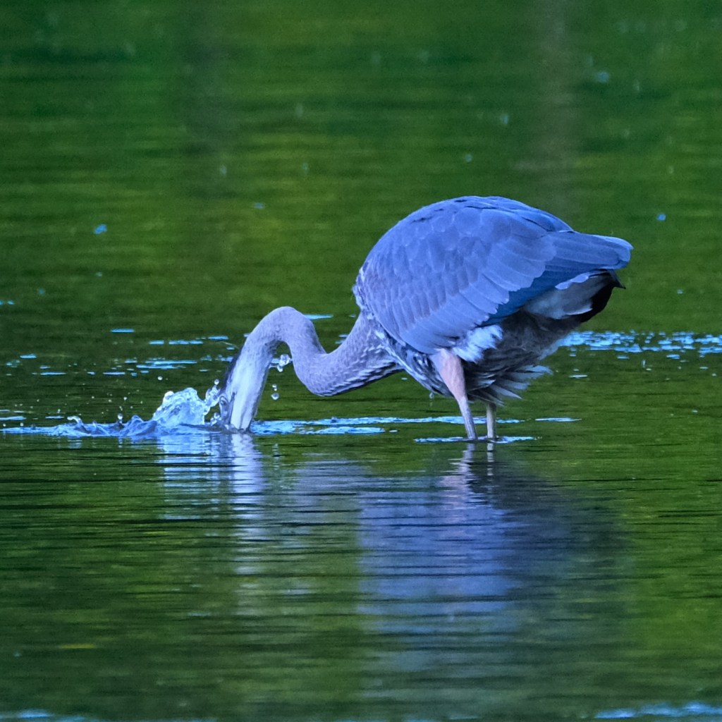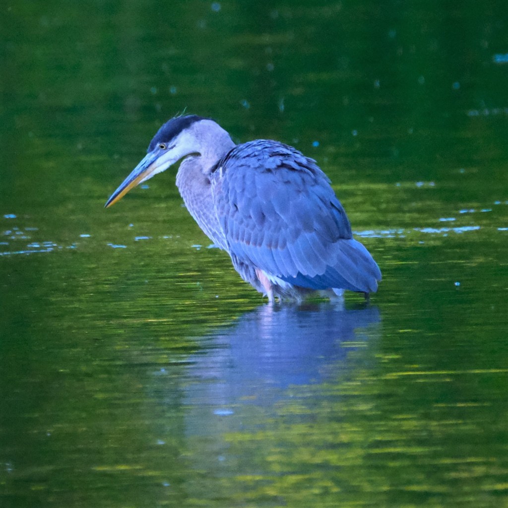 Right below the waxwings, a young blue heron was trying to do the same with fish but wasn’t having much luck.