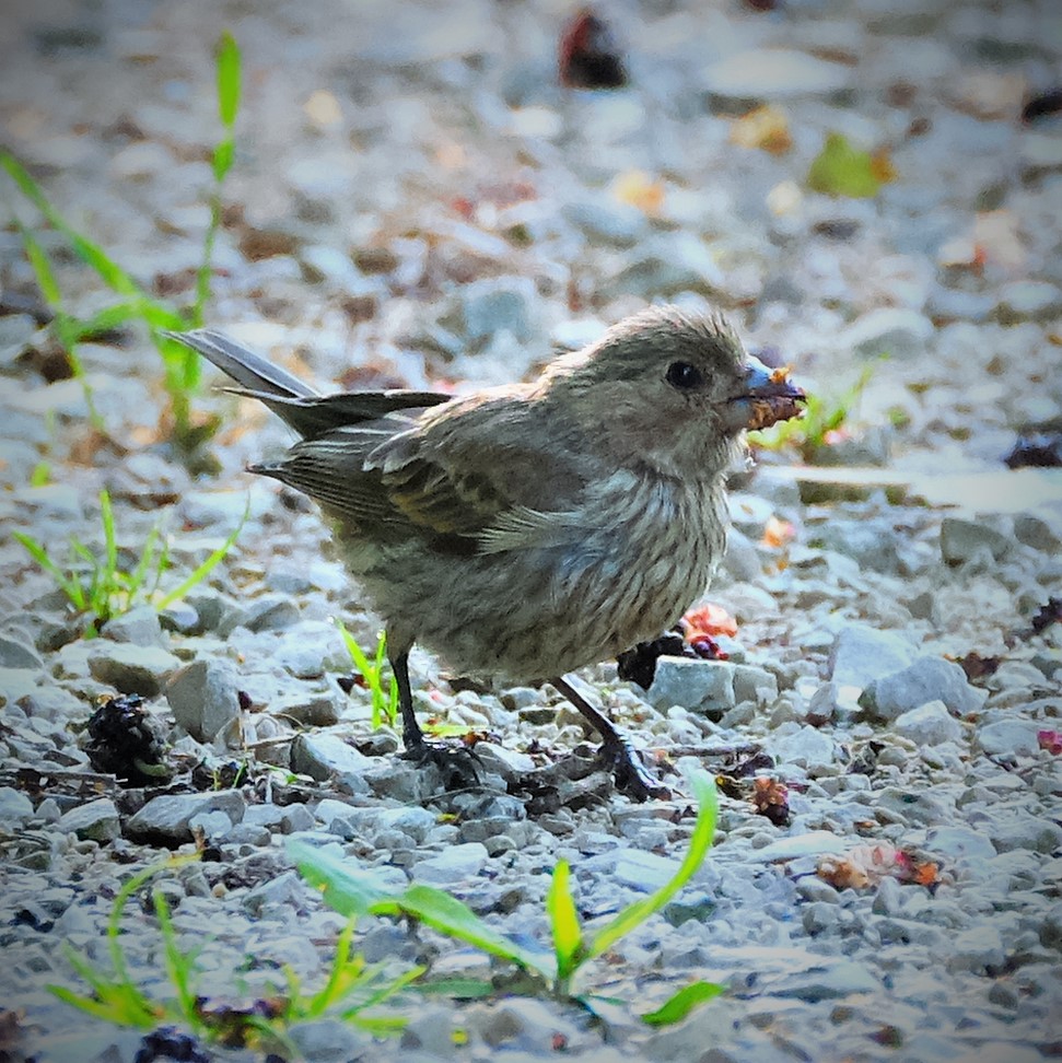 Meanwhile, on shore, this finch seemed to be having a much easier time with the mulberries.