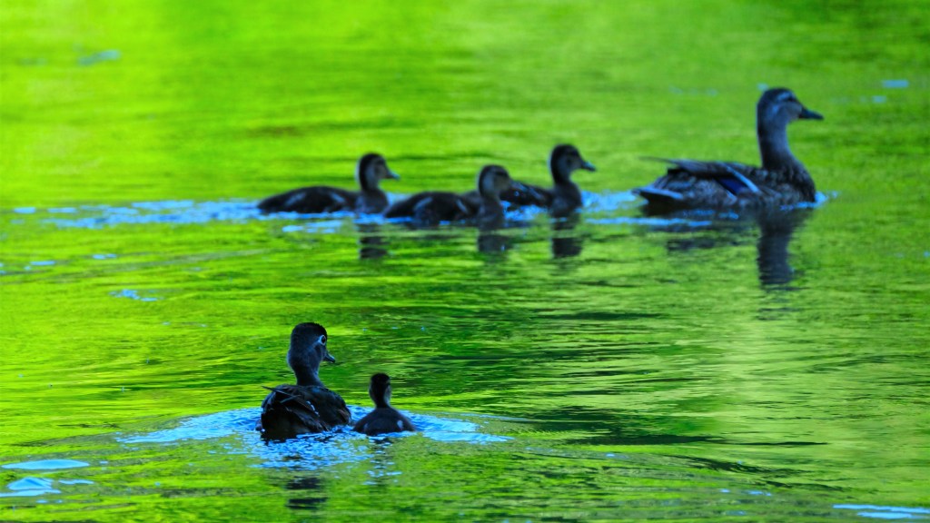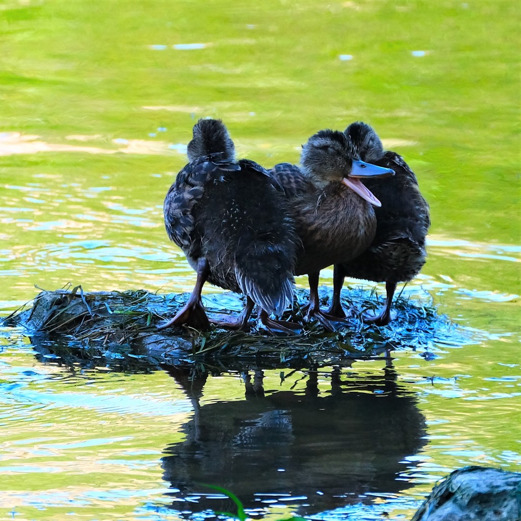 Back on the water, these mallard ducklings looked tuckered out from foraging and beyond ready for their nap.