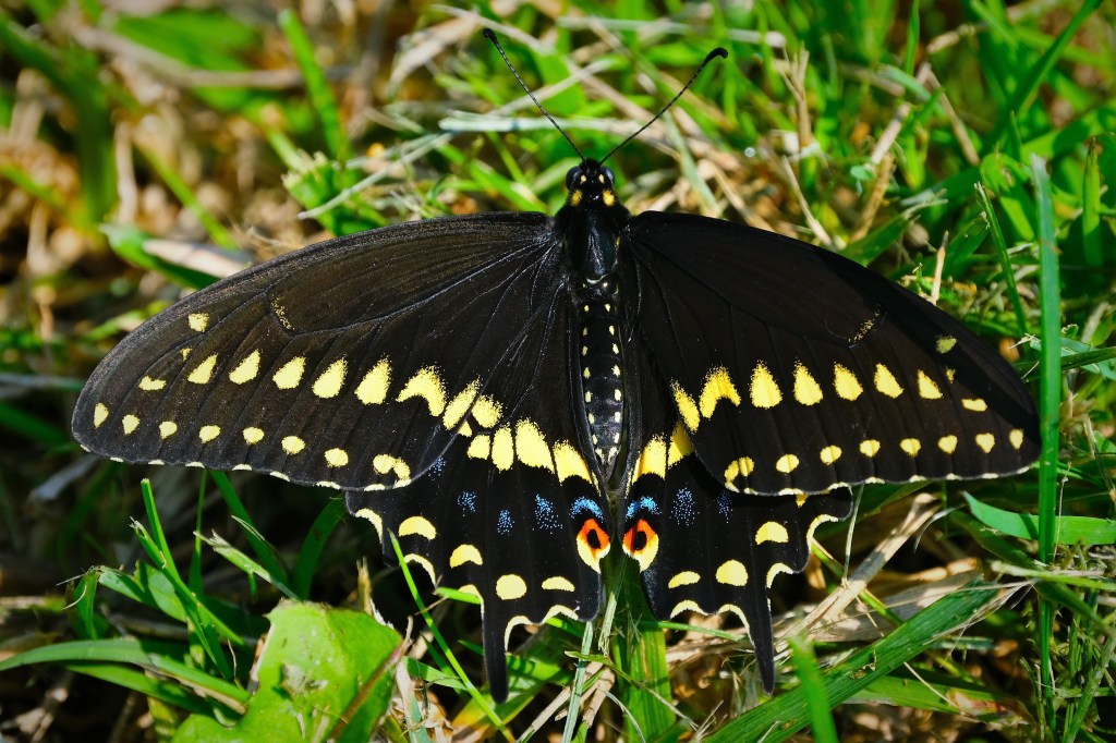Lastly, as I was about to call it a morning, this beautiful black swallowtail stopped by to warmup in the sun, and I would say he’s a male, based on how “large and bright” his yellow spots are.