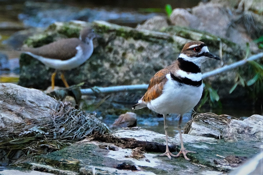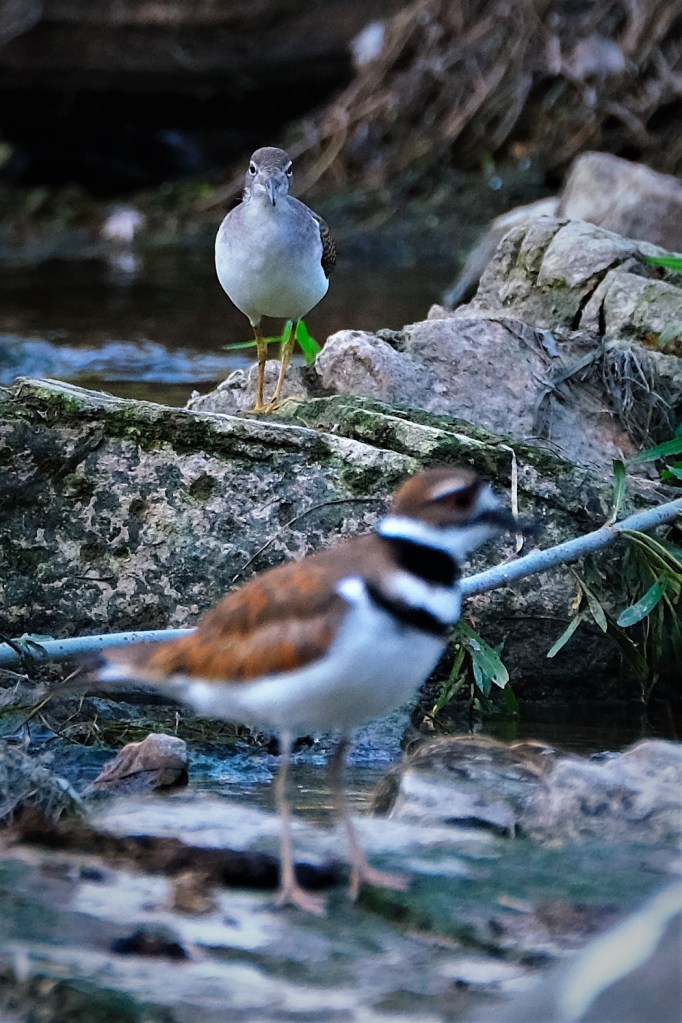 At the river, the water is beginning to recede a bit, after all the rain we’ve had, and the killdeer are back on the exposed rocks. There were at least 3, and this one wanted all my attention.