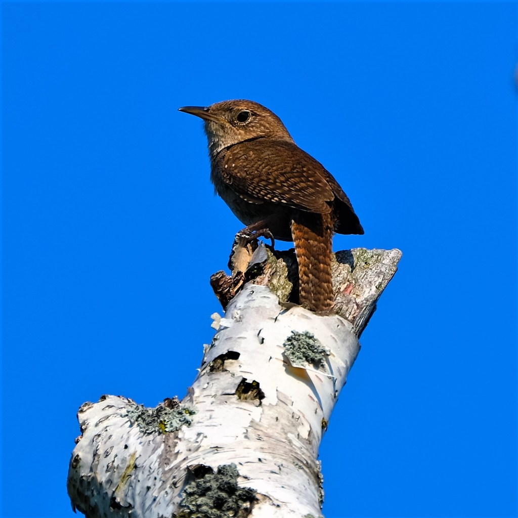 At the soccer fields, the wren was back to singing and keeping an eye on me.