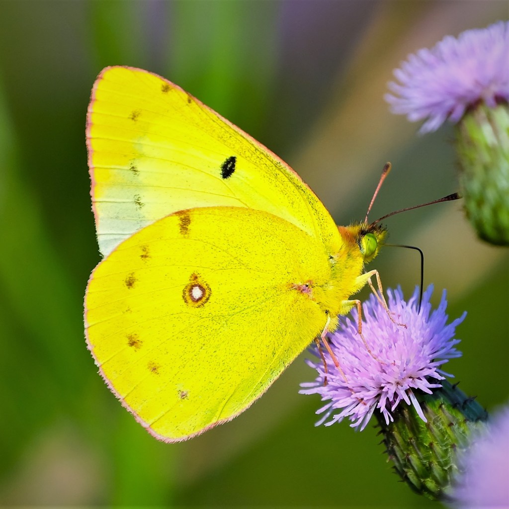 Lastly, a sulfur was sipping its fill from the Canada thistle this time.