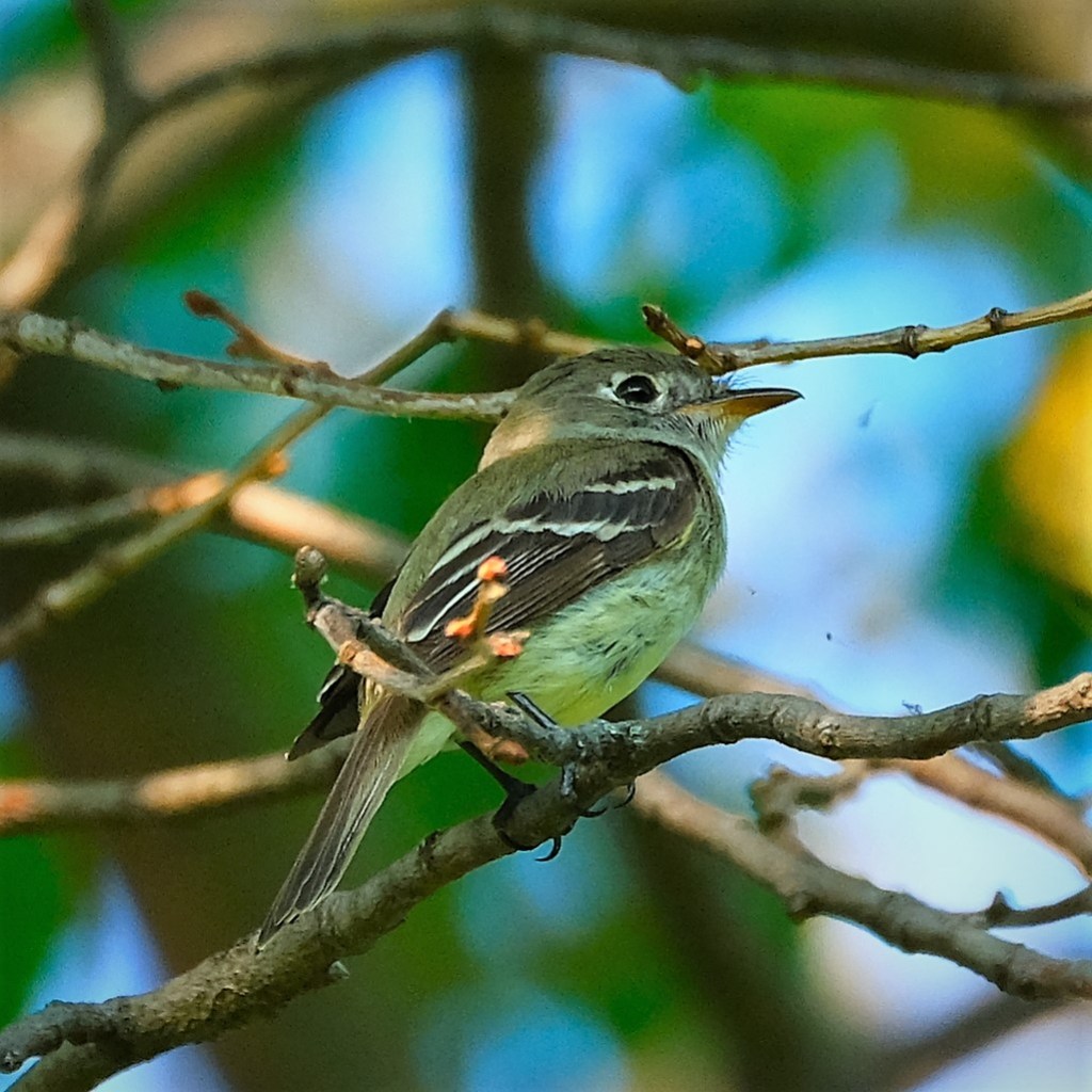 Overhead, this little cutie flew in to pose for a second, and after consulting with the experts at the Cornell Lab of Ornithology, I’m gonna go with Acadian flycatcher (Empidonax virescens). Now we’re cookin’! We’re just inside the northwest corner of its range, but Donna, if you know a better fit, I’m sure you won’t hesitate to drop me a line.