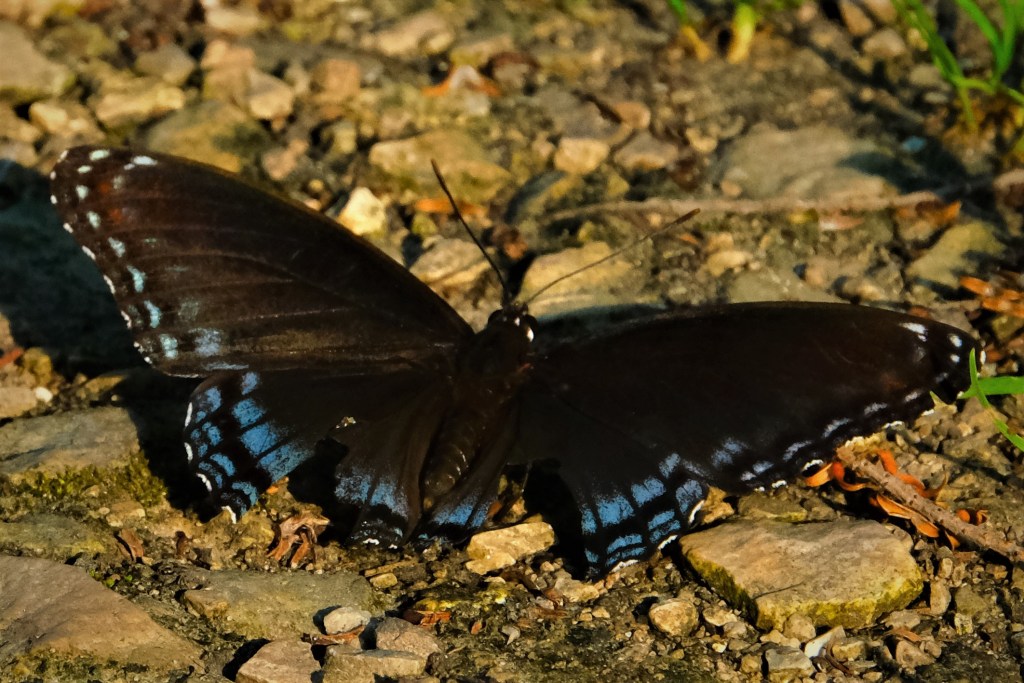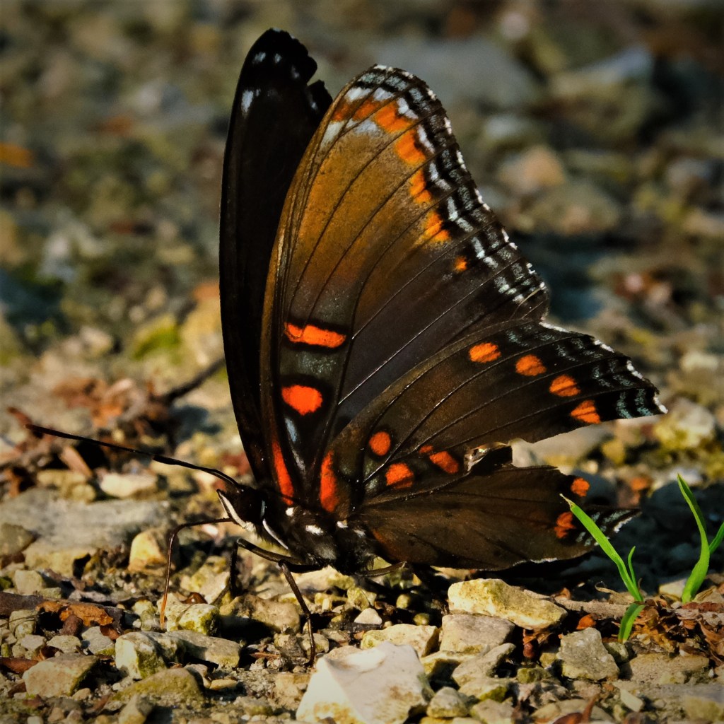 As you can see, things had really started to turn around, and they just kept getting better. I had barely finish with the flycatcher, when this slightly faded beauty stopped in, our first red-spotted purple (Limenitis arthemis astyanax) for this season, and not a second too soon, either. Woo hoo! Last year it took me several tries to finally find one this obliging.