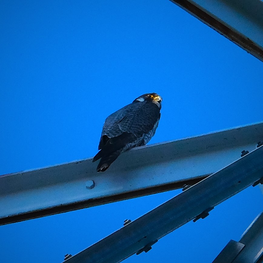 Finally, for the cherry on top, just as I was about to call it a morning, I heard the cry of this youngster perched on the WITI TV tower and probably demanding to be fed. My guess is that it’s a fledgling from the pair of peregrine falcons in the nesting box on the UWM EMS building, and that brings our bird-of-prey count to 7!