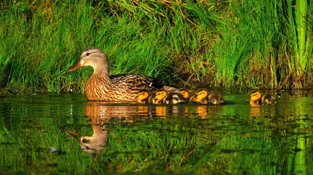 And our newest arrivals, the mallard ducklings, were basking in the full golden glow across the water.