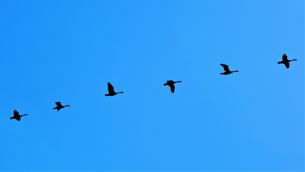 Finally, as I headed home, I spotted a long string of Canada geese heading south, perhaps on a training flight. I read conflicting reports on when exactly they molt their flight feathers and so cannot fly, so I can’t tell if this might be the last flight before being grounded or the first flight after being grounded, but it was a nice sight to see either way.