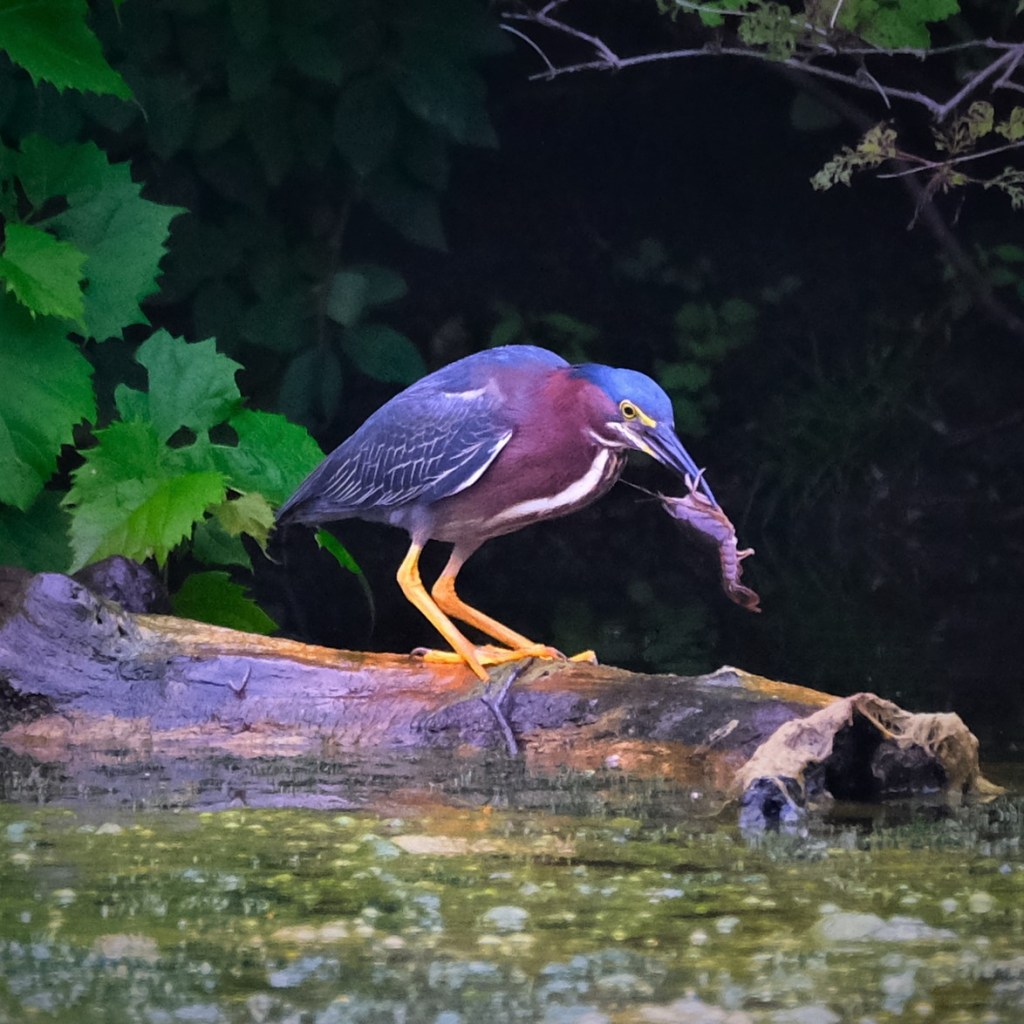 The wood duck hens and ducklings, the black duck hen, and a couple of mallard hens were also about, but not as photogenic as the herons this morning. The situation was similar at the river.