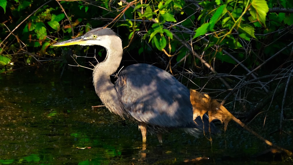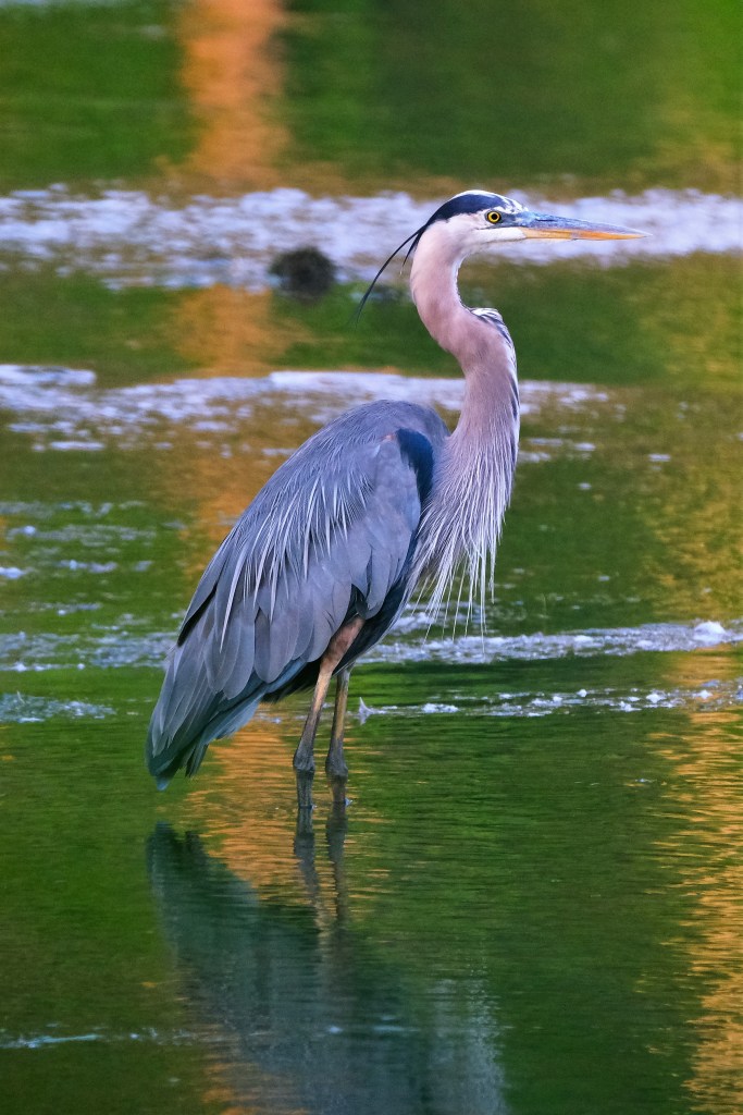 I didn’t see any green herons today, but here’s a blue heron looking all fancy on the river.